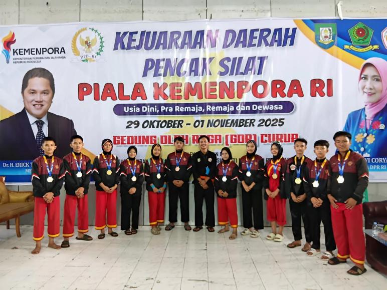 KAUR BENGKULU, II INDOKU.ID –Prestasi membanggakan berhasil diraih oleh Tim Pencak Silat Tapak Suci Kabupaten Kaur dalam ajang Kejurda Piala Kemenpora yang digelar di GOR Rejang Lebong. Di bawah kepemimpinan Bripda Fernando Ramos, anggota Sihumas Polres Kaur yang juga bertindak sebagai Ketua Rombongan sekaligus Official Tim, para atlet muda Kaur sukses menorehkan prestasi gemilang dengan meraih 12 medali, terdiri dari 5 emas, 5 perak, dan 2 perunggu.