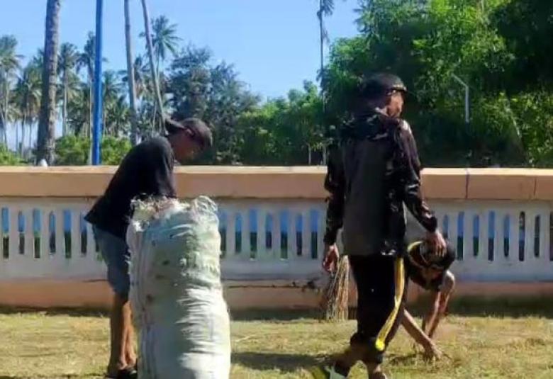Ciptakan Lingkungan Bersih, Karang Taruna Gotong Royong di Sekitar Masjid Darussalam.