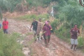 Mengharapkan Menjadi Perhatian Pemerintah, Seorang Ibu Rumah Tangga Keguguran Harus Digotong Dengan Bambu Kerena Jalan Rusak Parah.
