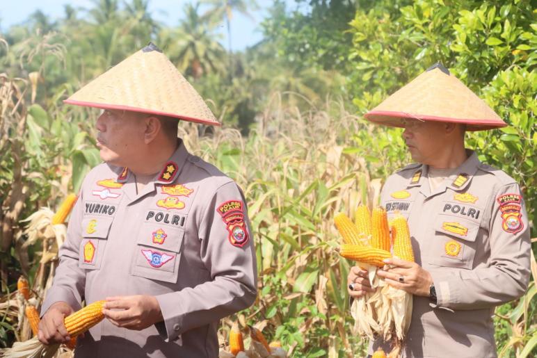Kapolres Kaur Polda Bengkulu Panen Jagung di Desa Sinar Pagi Kec. Kaur Selatan, Dukung Program Ketahanan Pangan Nasional.