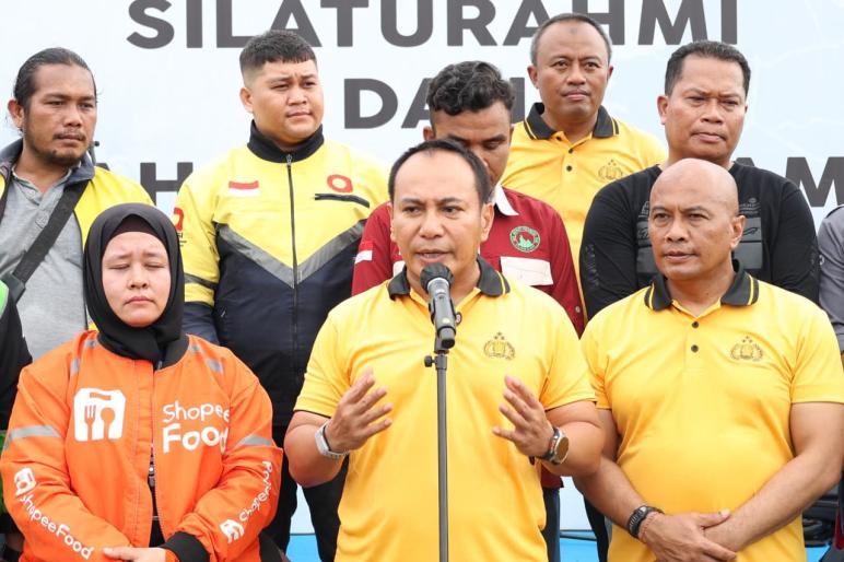Kapolda menyebut, hubungan baik antara kepolisian dan komunitas ojol sudah terjalin sejak lama. Ia bahkan mengaitkan warna hijau seragam ojol dengan program Green Policing yang tengah dijalankan Polda Riau.