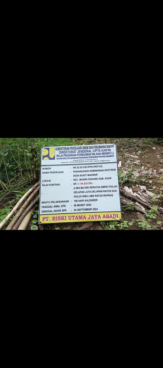 Diketahui proyek ini merupakan bantuan langsung dari Kementerian Pekerjaan Umum dan Perumahan Rakyat (PUPR) yang dikelola oleh Balai Prasarana Permukiman Wilayah Bengkulu.