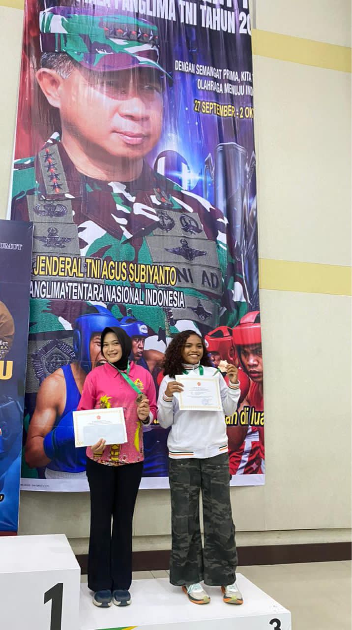 Dengan antusias tinggi dan latihan serta usaha yang maksimal, Bripda Jenitiara berhasil meraih hasil yang memuaskan mendapatkan Juara 3 pada kelas Womenโs Feather W57kg pada kejuaraan Open Tournament Tinju Piala Panglima TNI Tahun 2025. Dan prestasi Bripda Jeni ini agar bisa menjadi contoh untuk personel Polda Bengkulu yang berprestasi di bidang olahraga terutama sehingga dapat menjadi motivasi bagi generasi muda dan personel polda bengkulu yang memiliki bakat untuk selalu ingin terus berusaha dalam menggapai impian.